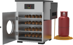 The Gas Powered Egg Incubator is an affordable and a cost-effective machine that monitors and regulates the temperature and humidity, ensuring the optimum environment to incubate eggs while ensuring cost effectiveness by reducing dependence on electricity.